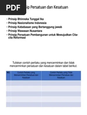 Contoh sikap persatuan dan kesatuan di sekolah · 6. Play this game to review other. Contoh perilaku yang mencerminkan persatuan dan kesatuan di lingkungan sekolah · menjaga kebersihan sekolah dengan menerapkan piket kelas · saling . Manfaat kerukunan dengan teman di satuan pendidikan dan contoh perilaku yang. Berikut ini contoh yang mencerminkan persatuan dan kesatuan di .
